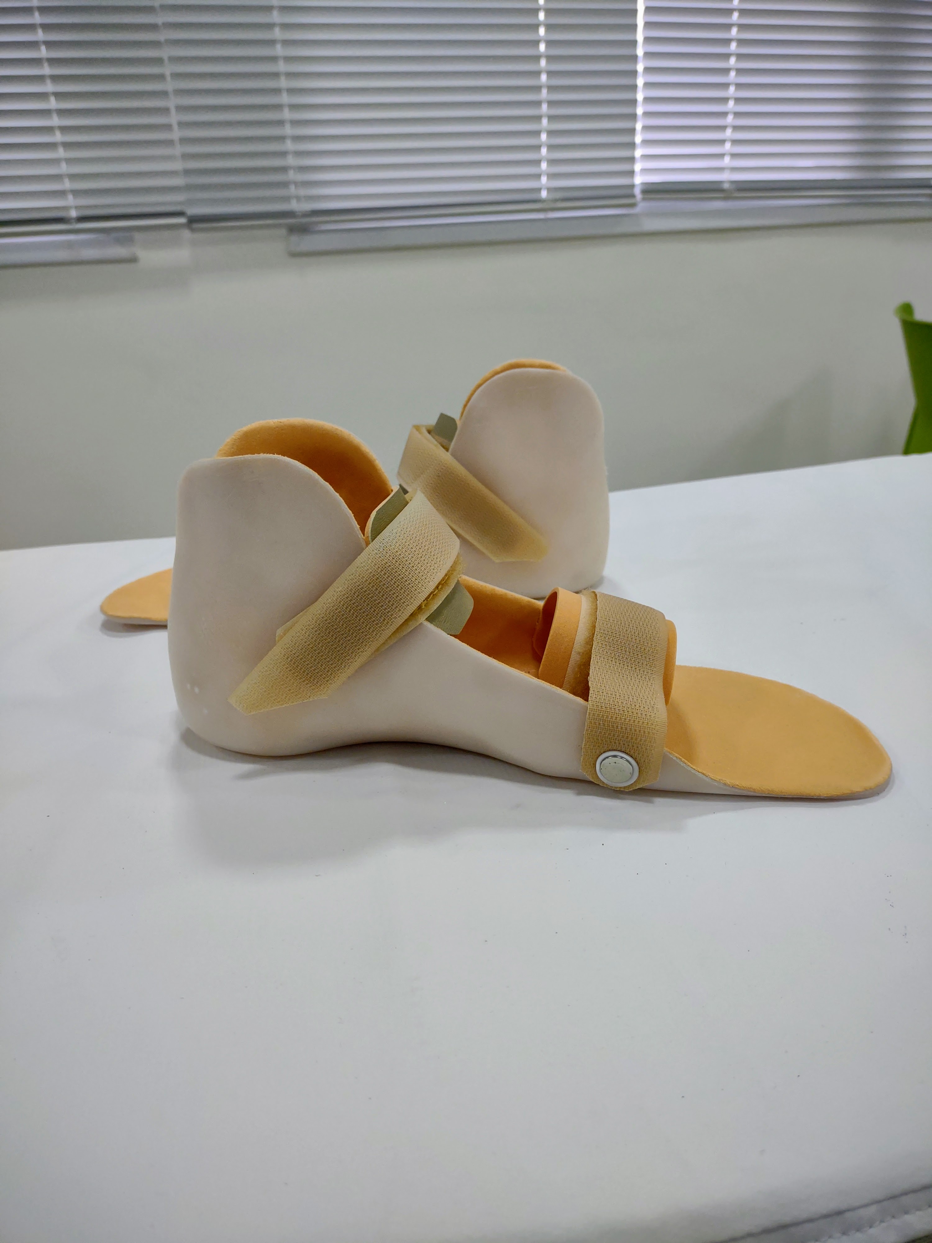 Dispositivos que bloqueiam o tornozelo à 90 graus.